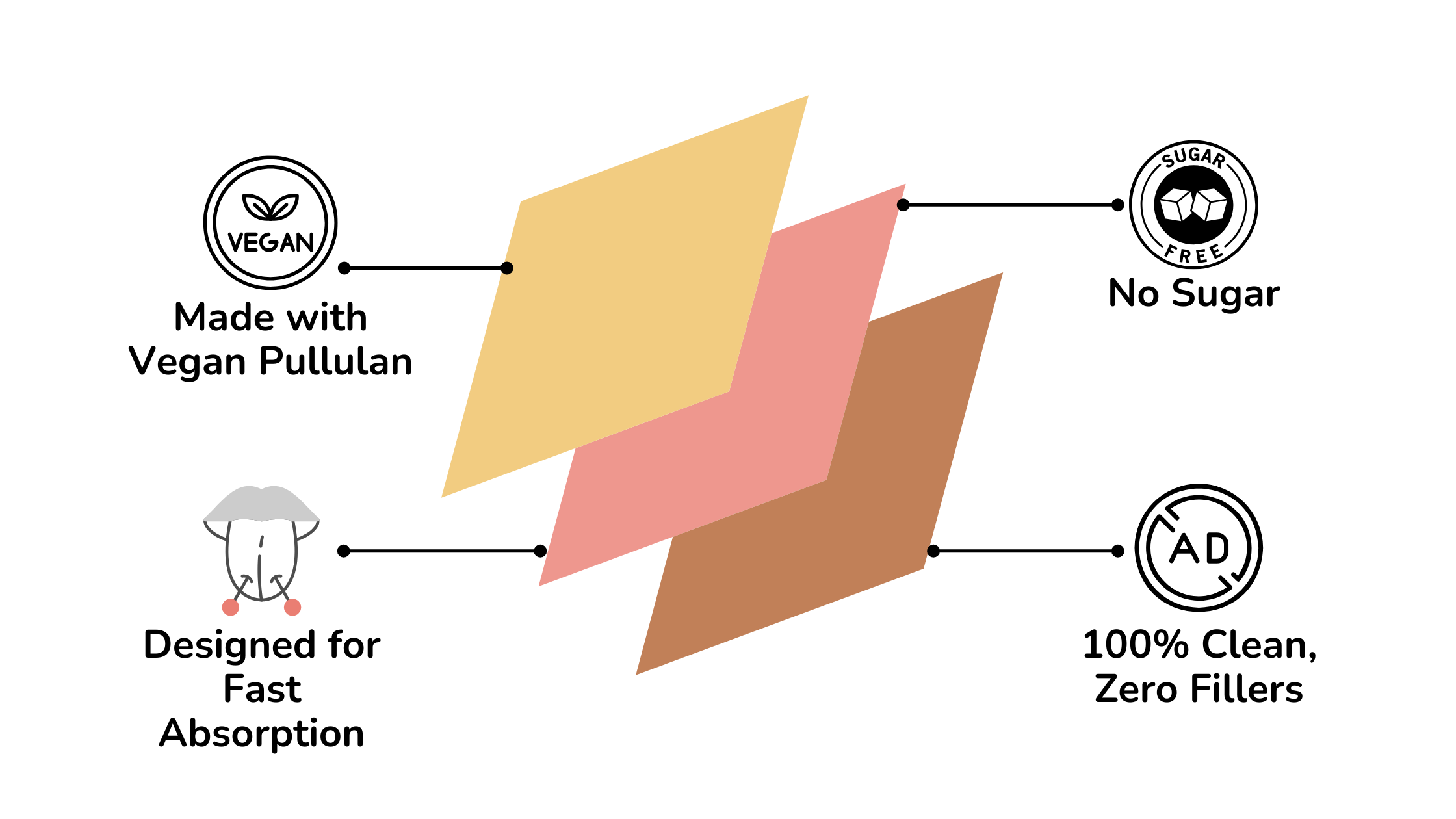 Meet the smarter way to supplement. Simply place a strip on your tongue — it dissolves in seconds and absorbs directly into your body, bypassing the digestive system for instant results.