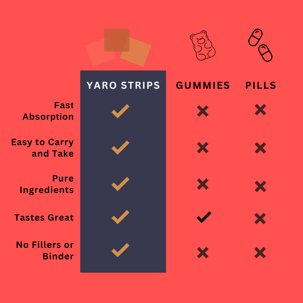 Unlike coffee and energy drinks that must pass through your entire digestive system and take forever to kick in, our strips dissolve instantly on your tongue. This allows for the active ingredients to absorb directly into the body, bypassing the digestive system, to deliver faster and more effective results.